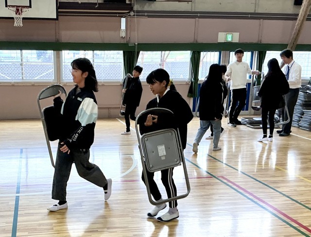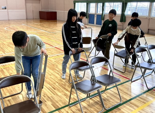 入学式準備で大活躍。6年生としての自覚をもって取り組んでいます