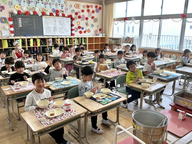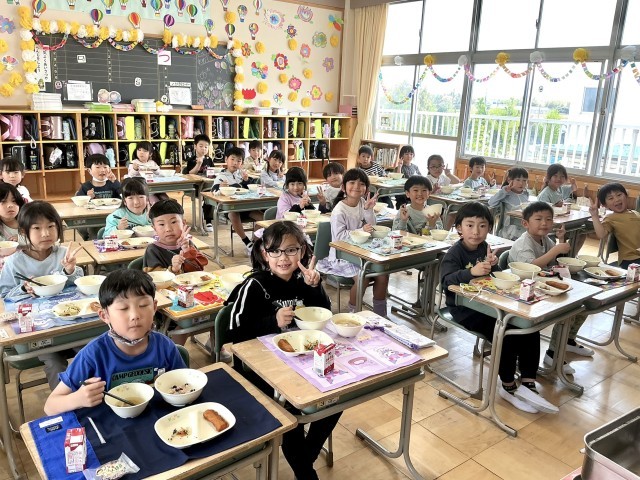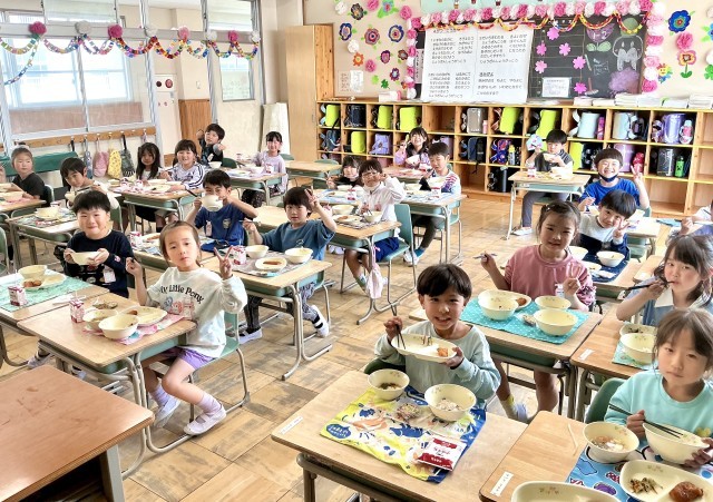1年生 もりもり食べて元気いっぱい 笑顔いっぱい