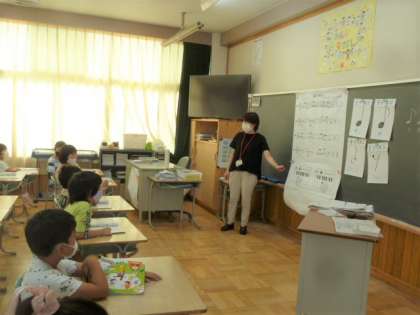 音符の学習をして、音を伸ばす長さがわかりました。「山のポルカ」は、楽しい曲ですね。<グランドデザイン:学びづくり>