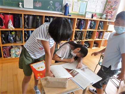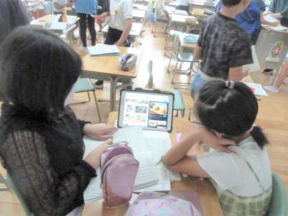 和と洋の衣食住について、調べ学習をして、メモを作っています。インターネットも使いながら、自分のテーマに沿って調べます。