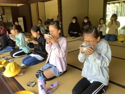 お茶の作法についても学びました。体験にご協力いただいた丈山苑様、ありがとうございました。<グランドデザイン:学びづくり>