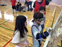 先週、先生たちはしょうこう口のけいじ作りをしました。また新学期に見てくださいね。