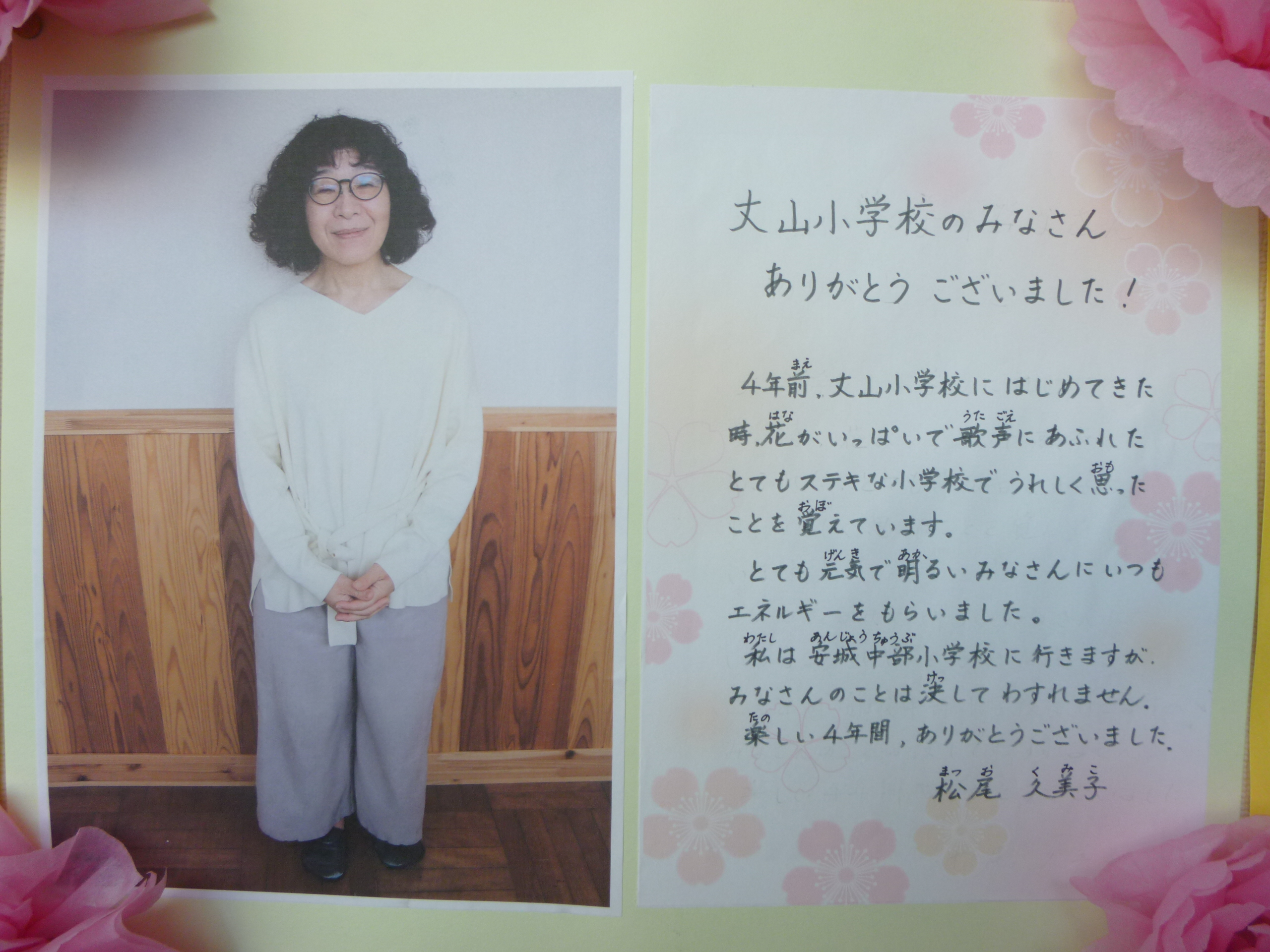 退職・異動された先生から、お別れのメッセージをいただきました。みなさんに見てもらう機会がなかったので、ホームページに掲載をします。下記をクリックしてください。※本日で終了です。