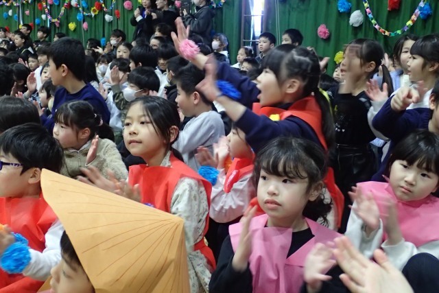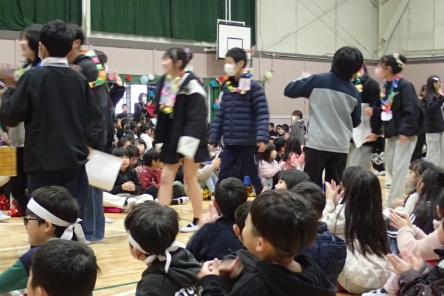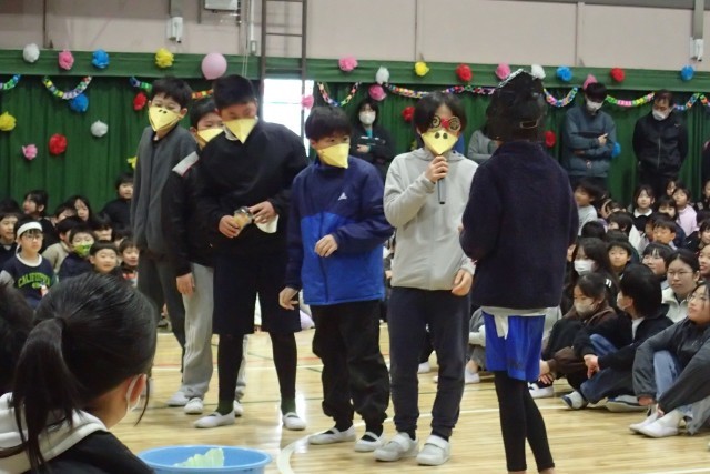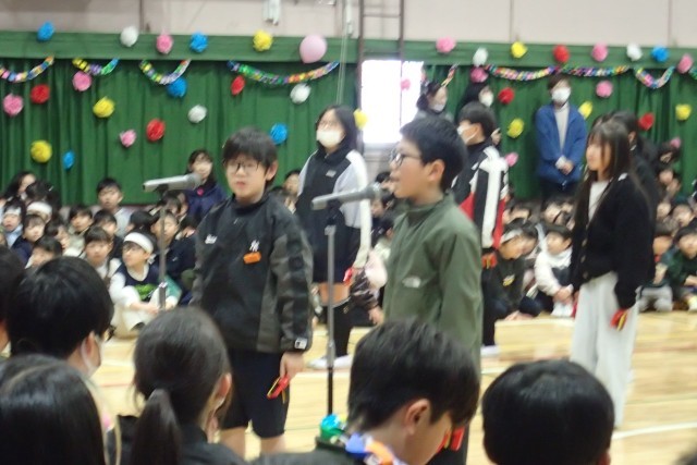 5年生が中心になって、6年生を送る会を行いました。学年ごとに、工夫をこらした出し物をして、6年生が小学校生活の思い出をふり返る時間となりました。