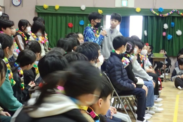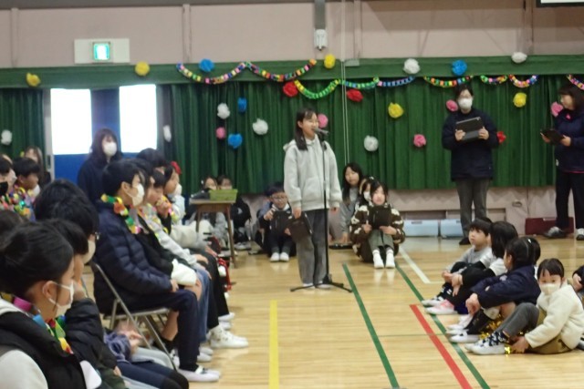 最後に、6年生の先生から、5年生へお礼の気持ちが伝えられました。来年度は、立派な最高学年になりそうで、楽しみです。