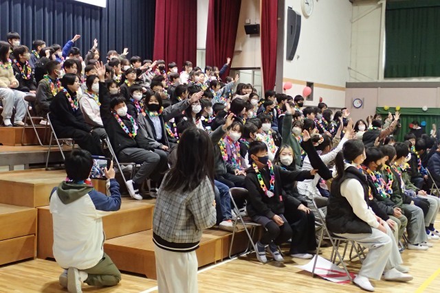 体育館に美しい歌声を響かせ、丈山っ子全員がその歌声に瞬きすることを忘れるほど魅了されていました。
