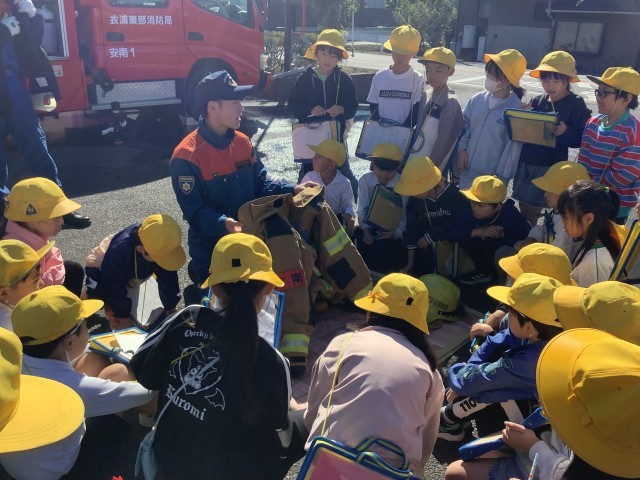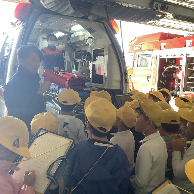 たくさんの質問にも答えてもらい、消防車、救急車の中も見せてもらいました。