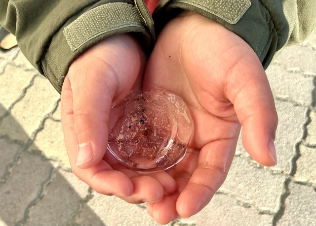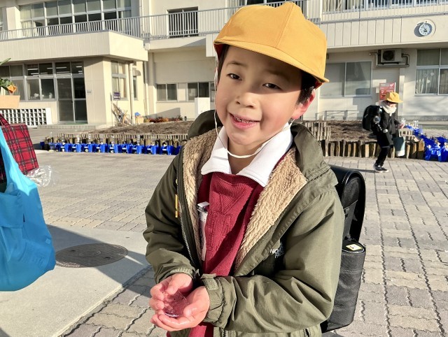 もう一人の子は、通学途中に見つけた氷を見せてくれました。水道の蛇口についていたそうです。