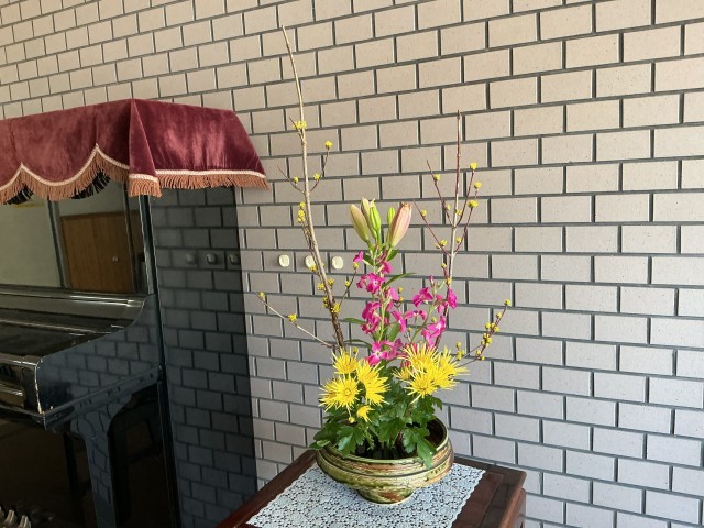 4年生の教室近くに、「ロウバイ」と「ネコヤナギ」が飾られています。