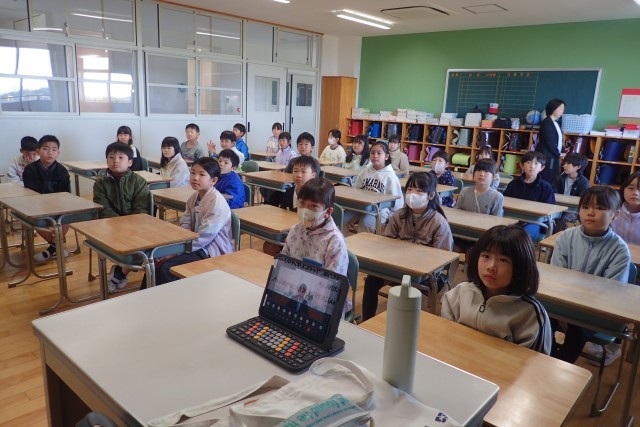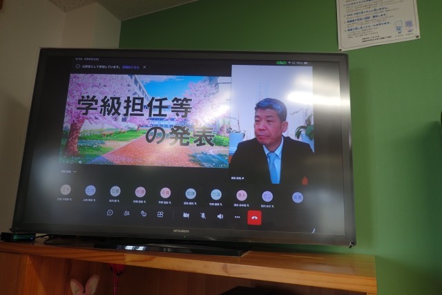 入学式に先立って、オンラインで始業式を行いました。みんな緊張して、とても良い姿勢で参加することができました。