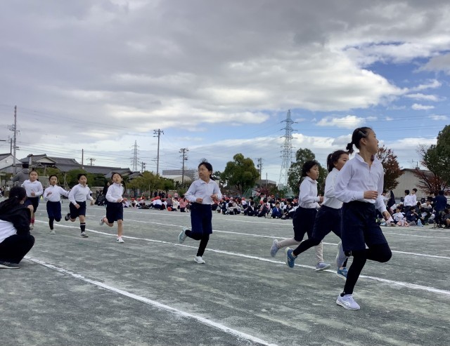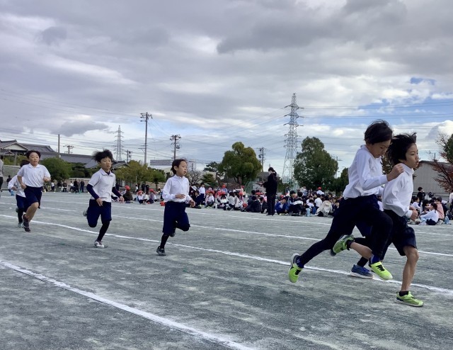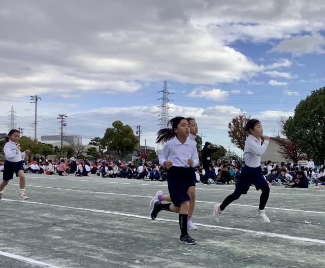 まきじゃくの使い方がわかったところで、もっと長い長さに挑戦しました。まず、100mを歩いて、時間をはかりました。1分以内の人がいれば、2分以上の人もいました。次に、100mのタイムを元に、グランドの長さをはかってみました。およそ、200mと結果が出ました。予想が当たった人もたくさんいました。