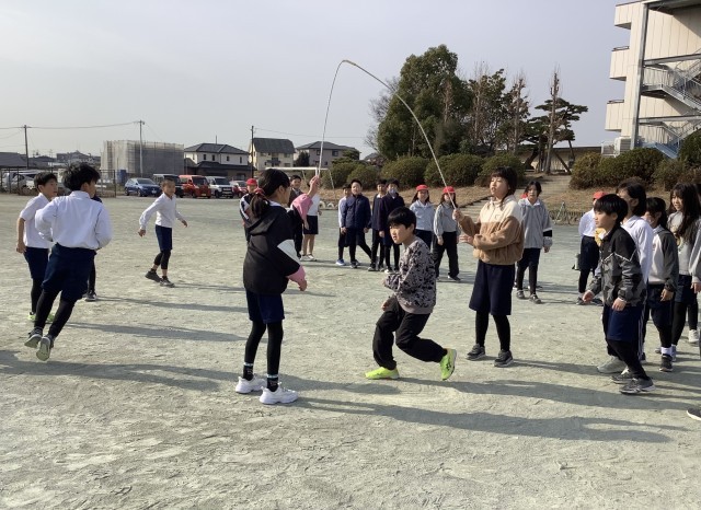 体育の授業での長なわ練習にも力が入っています。よりはやく、より多く跳ぼうと、自分たちの跳び方を分析しています。また、6年生に技を教えてもらおうと、跳び方を真剣に見ている学級もありました。