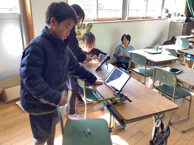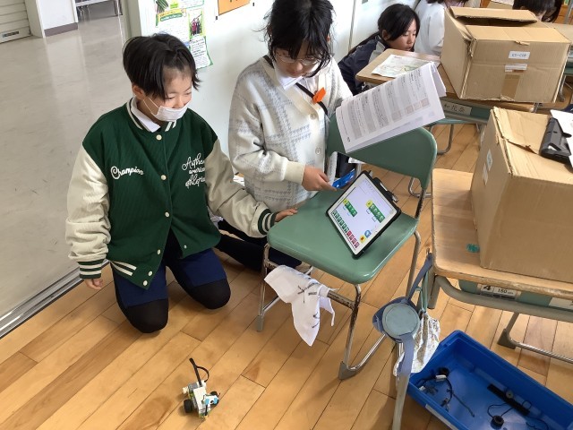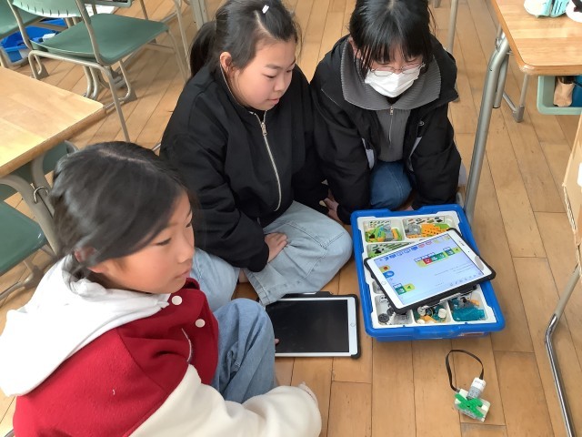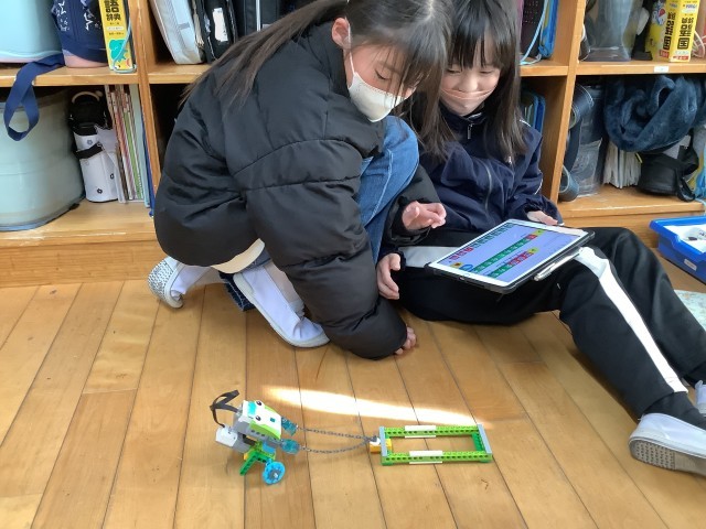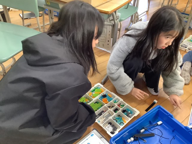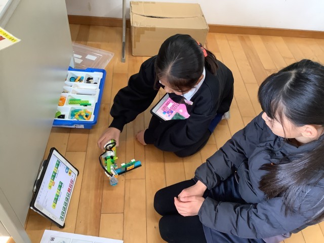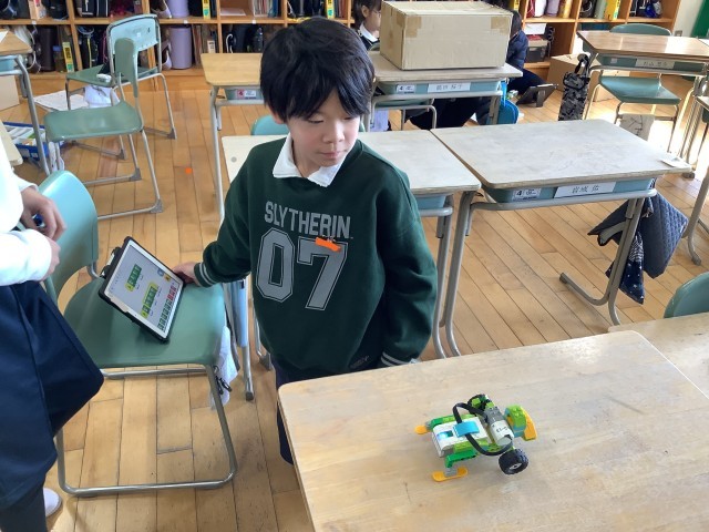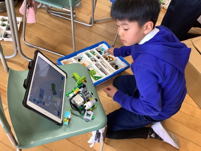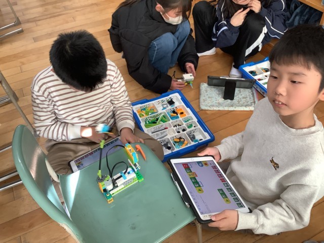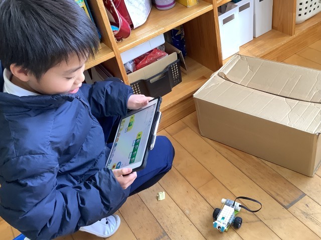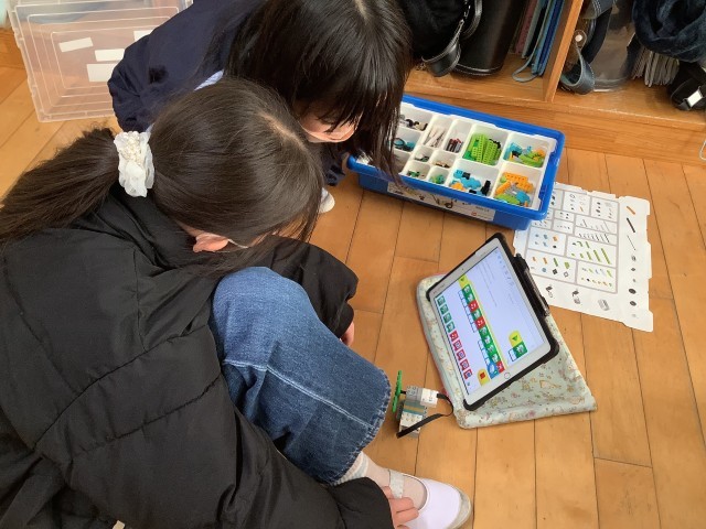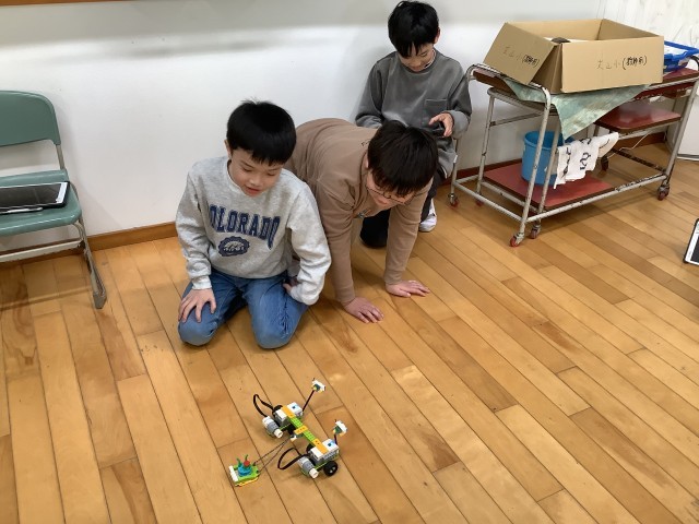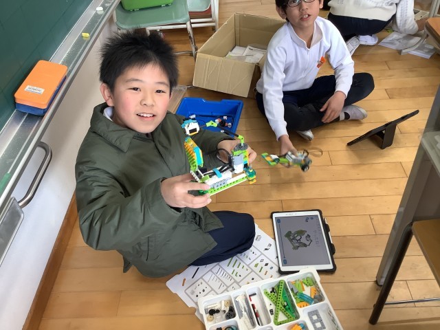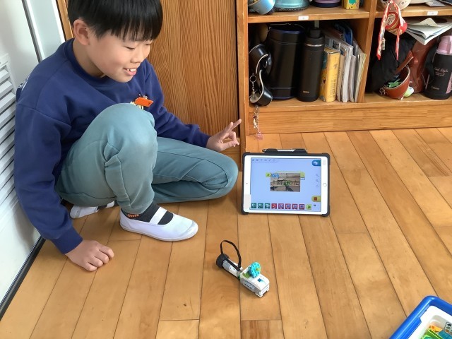 レゴブロックで作った作品をプログラミングで動かす操作にチャレンジしました。みんな思い思いのブロックを作って、プログラムを工夫して、楽しい動きを試していました。