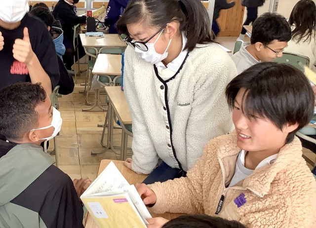 学級の仲間とともに、教科書やノートの内容から問題を出し合うことで学習の定着を図っています。