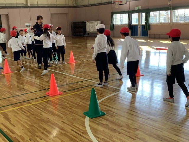 1年生 体育科「長なわ8の字跳びに挑戦」