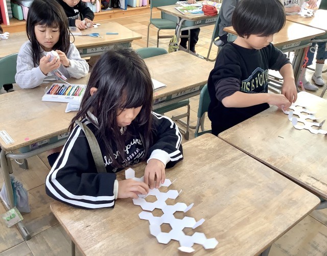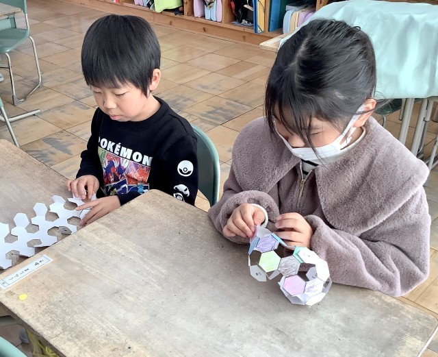 色をぬって、折り目に合わせて、折っていきます。だんだんと形になってきました。
