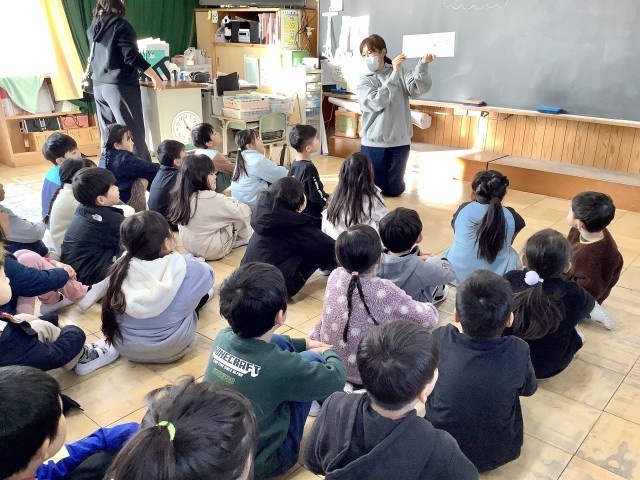 時には笑い声が聞かれ、お話の世界を楽しんでいる様子です。前のめりになって聞いています。