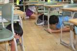 各教室で、シェイクアウト(まず低く・頭や体を守り・動かない)、静かに放送を聞くなどの訓練を行いました。その後、教室で、避難経路や集合場所の確認、訓練のふり返りをしました。