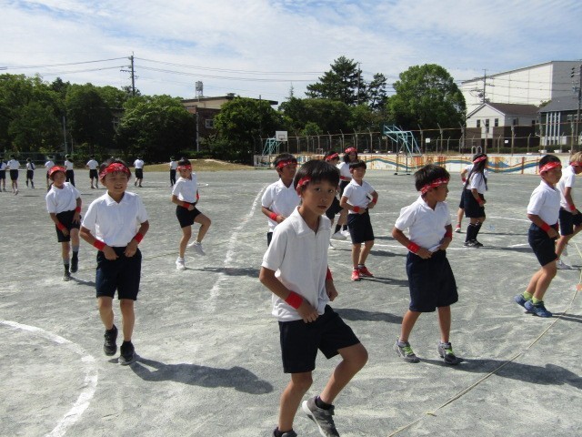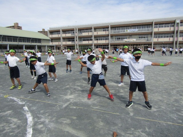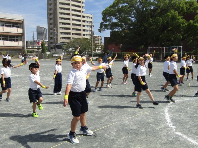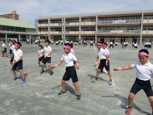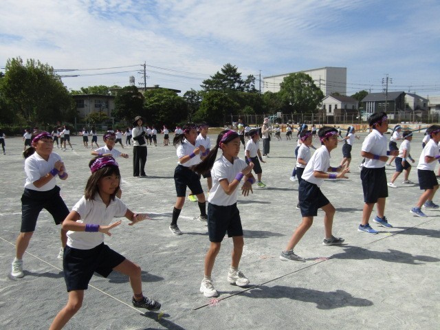 運動場での通し練習が始まりました。自分の場所を覚え、自信をもって踊れるように、あと2週間がんばりましょう。