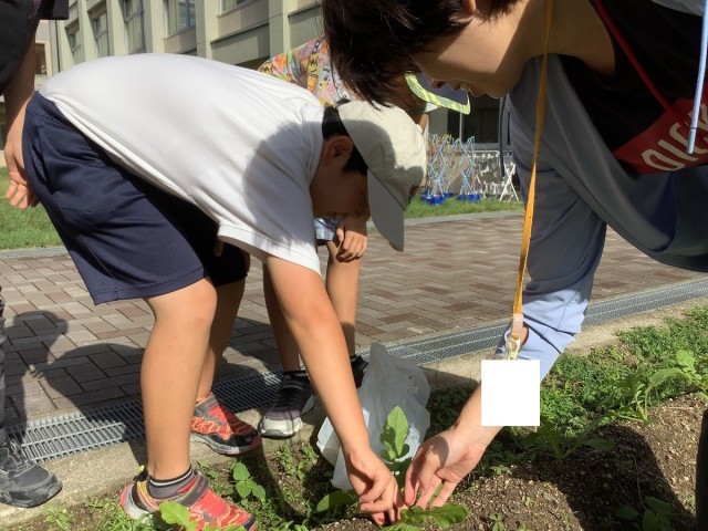 10月6日(月)に先日植えた大根やかぶの間引きを行いました。