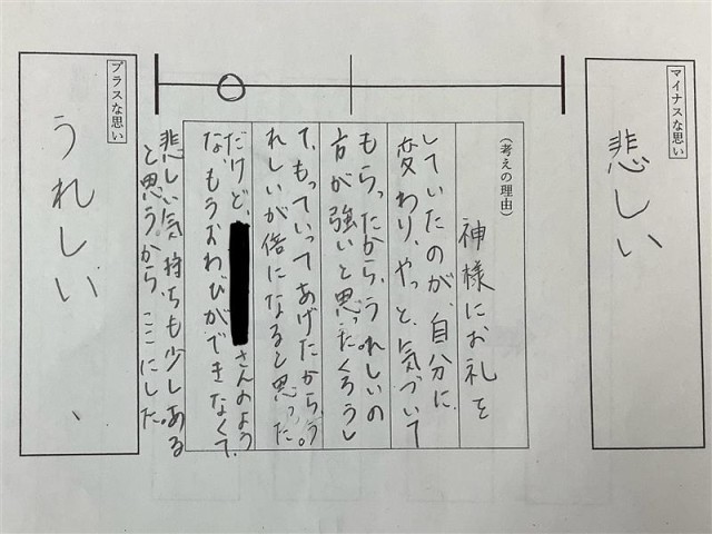 授業の終末には、話し合い活動を通して考えた「ごんの気持ち」をメーター(ポジショニング)と文章でまとめました。さらに、子どもたちはそれらの意見を発表することで改めてごんの気持ちを深く考えると共に、多様な意見が出る授業の楽しさを実感していました。