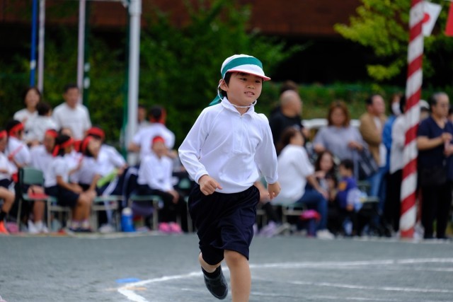 徒競走は、ゴールを目指して最後まで手を振って走りました。