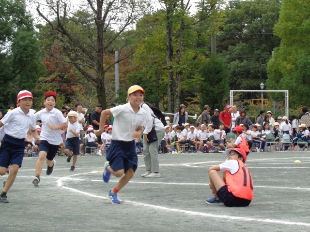 徒競走は、ゴールを目指して半周全力で走り切りました。