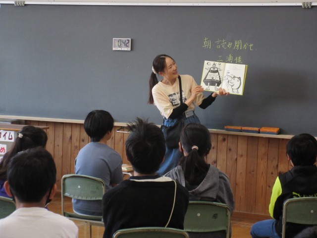 今日は、朝の時間に読み聞かせボランティアの方が来てくださいました。