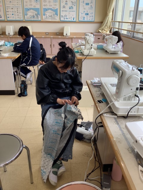 5年2組はエプロンが完成する子が出てきました。まだ完成していない子もていねいに頑張っています。