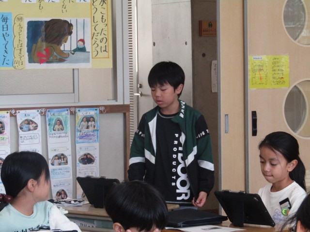 3組は、国語「サーカスのライオン」。いよいよ物語の山場をむかえ、中心人物の心情を文章から読み取っていきました。