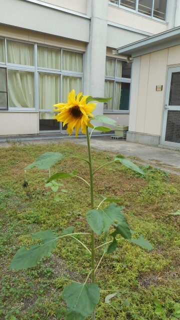一方で、中庭では季節外れの「ヒマワリ」が咲いています。