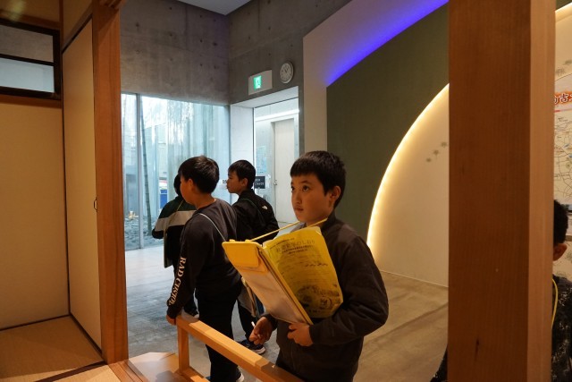 新見南吉記念館では、ごんぎつねで出てきたはりきりあみや火縄銃の展示を見て、「本のやつはこれか!」と驚いていました。