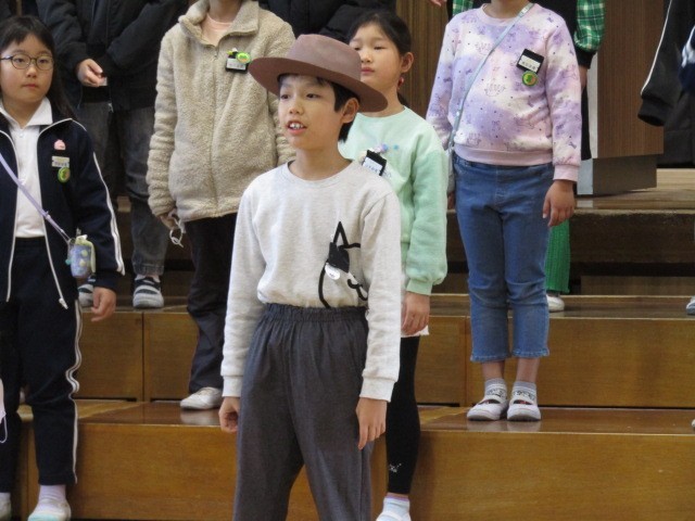 本日行われたさわやか集会で、3年生が南吉発表をしました。