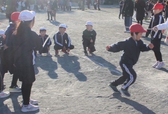 1年生は初めての参加で、最初は長縄の中に入るのも跳ぶのも難しく大変でしたが、練習を重ねるうちにメキメキと上手になりました。