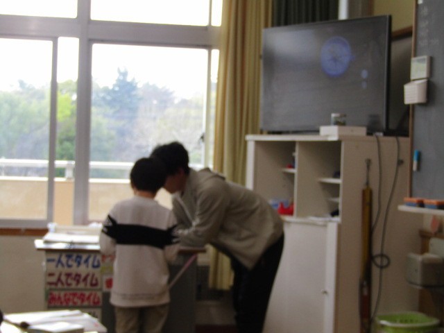 2組は、理科「じしゃくのせいしつ」。磁石にくっついた釘は磁石と同じ力をもつことができるのか。方位磁針を使って、磁石と同じ動きをするのか調べていきました。
