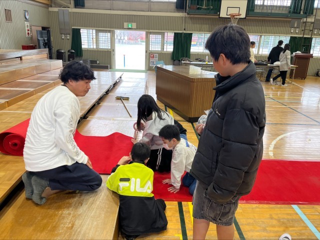 卒業式前日に5年生児童が各担当に分かれて卒業式の準備を行いました。