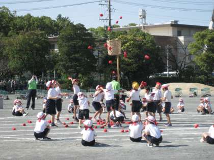 一つでも多くの玉を入れようと、懸命にがんばる1・2年生の姿を見て、運動場に笑顔と拍手が広がりました。
