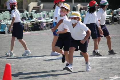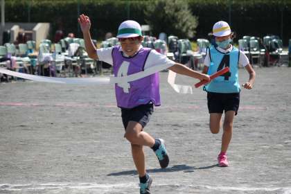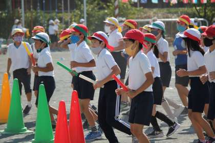 4年生は運動会で学級対抗全員リレーをしました。前日まで、休み時間は友達と誘い合って練習し、バトン練習を懸命に行っていました。どのクラスも友達を信じて、バトンパスをし、全力て走る姿がすてきでした。