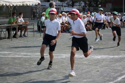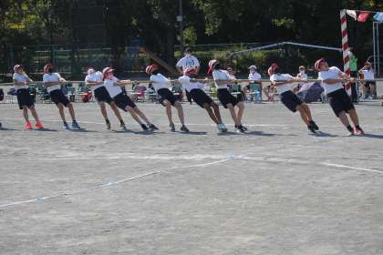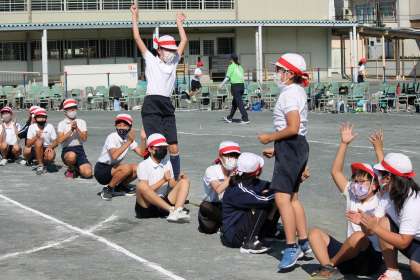 6年1組の写真です。 思わずガッツポーズ!みんな輝いています。