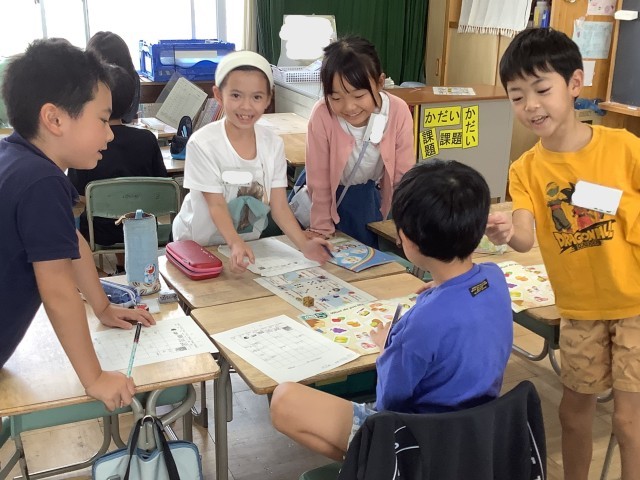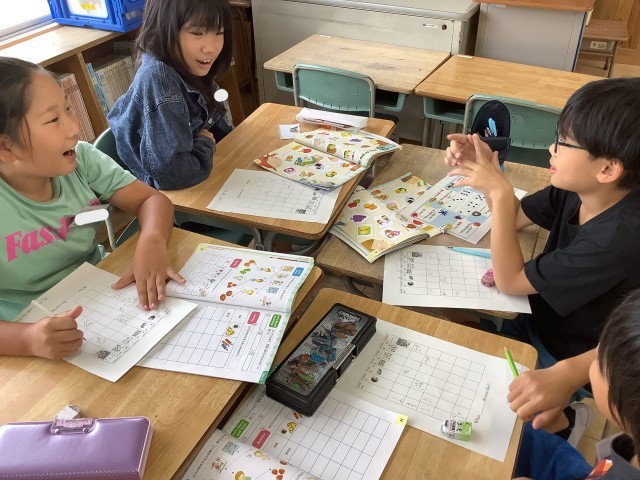 外国語の授業では、友達と好きなものについて質問し合ったり、答えたりしました。「What do you like?」を使って、たくさんの好きなものを表現しました。