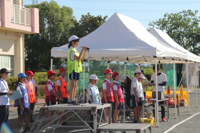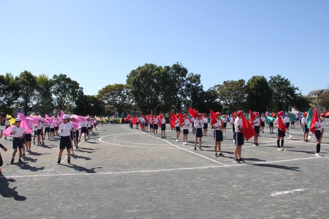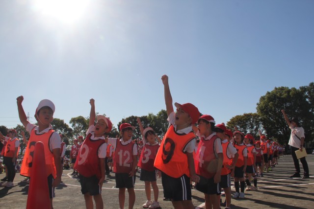 久しぶりの晴天の中、運動会予行演習が行われました。来週の運動会本番に向けて、動きの確認を行いました。運動会に向けてさらにがんばっていこうと、青空に向けてこぶしを突き上げながら、みんなで誓い合いました。