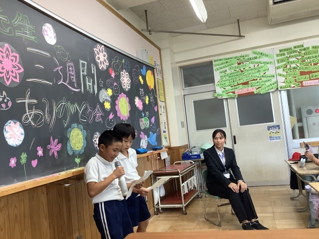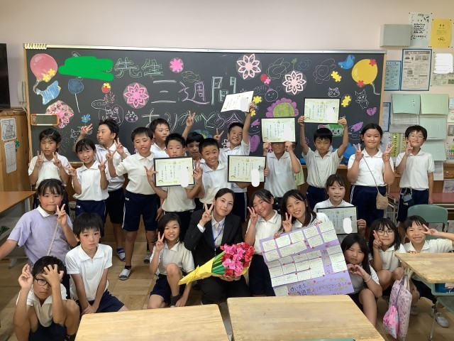 先週の金曜日で教育実習が終わりました。3週間という短い時間でしたが、子どもたちにとってかけがえのない思い出になったようです。今回は、1週間前から企画していたサプライズお別れ会を実施しました。実習生の先生のがんばりを感じ、ありがとうの思いを込めて、すてきな時間にしたいと一生懸命考えていました。サプライズは大成功に終わり、笑顔いっぱいの子どもたちでした。