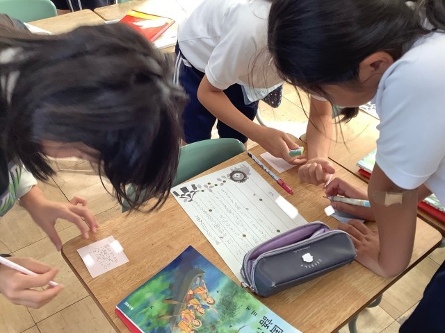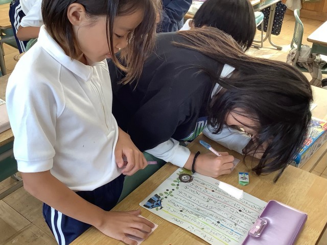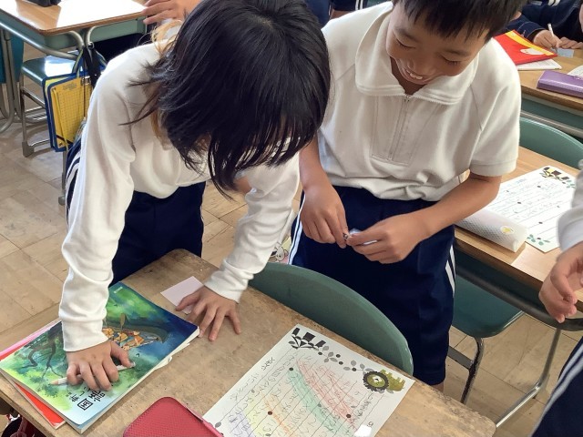 国語の学習では、『サーカスのライオン』という物語に出てくるじんざに、手紙を書く活動を行いました。心に残った場面や、じんざに伝えたいことを書いた手紙を友達と見せ合い、感想を伝え合いました。