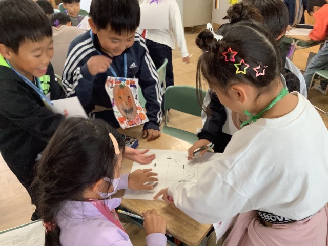 3年2組では、ハロウィンパーティーを行いました。事前に学級のみんなで考えたレクリエーションを行い、たくさんの笑顔が見られました。友達と協力したり声をかけ合ったりして、楽しい時間を過ごしました。