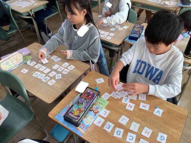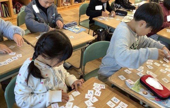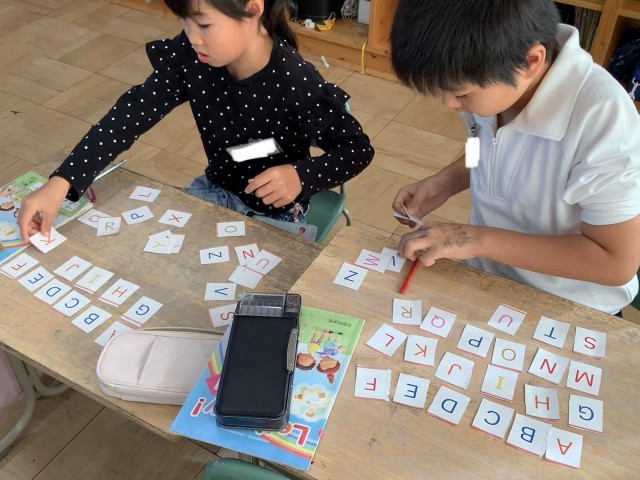 外国語では、アルファベットを覚えています。今日は、AからZのカードを並び替える活動を行いました。「次は・・・」と、一生懸命カードを探す子どもたちの姿がありました。