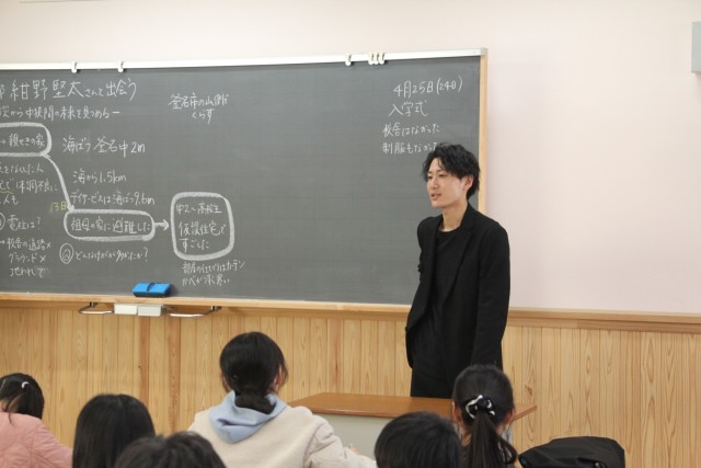 東日本大震災を体験された語り部(防災士)をお招きしました。これまで地震対策について調べたり、避難所体験をしたりした5年生が、実際の様子や当時考えていたことなどを伺うことで、決して他人ごとではないことを実感しました。今日の話を伺い、改めて、自分の大切な家族や人、自分自身を守るために、どうしたらよいのか、考え始めました。