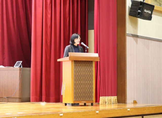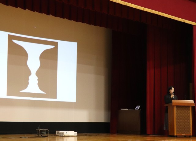 11月10日に桜林集会が体育館で行われました。校長先生の話では、校長先生が「ルビンの壺」の絵を提示され、子どもたちに何にみえるか尋ねられました。子どもたちからは、「瓶」「砂時計」「顔」などの意見が発表されました。校長先生は「どれも正解です」と言われました。「ものの見方」は一人一人違っていて当たり前。その一つの見方だけにこだわらず「違う見方はないかな?」「これのよさはどこかな?」と考えることで楽しさが増えたり、多くの人とつながったりして人生が豊かになるとお話されました。