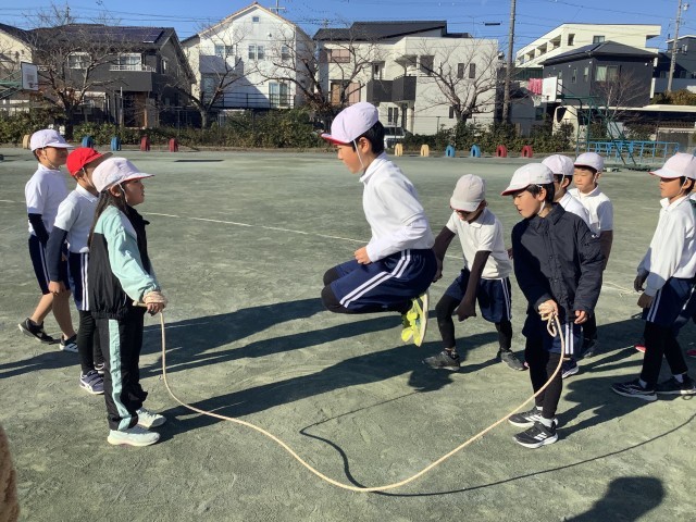今週の金曜日に実施される大縄とび大会に向けて、各クラスで練習に励んでいます。準備体操でケガを予防し、大縄や個人の縄跳びの技を極めています。あやとびや二重とび、サイドクロスなど、いろいろな技に挑戦して楽しんでいました。