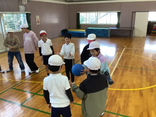 2学期最後のハッピータイム(3年生との縦割り交流)を行いました。今回は3年生が企画・運営をしてくれました。「船長さんの命令ゲーム」は、「船長さんの命令です」が最初についた指示は行い、「命令です」が最初についた指示は行わないというゲームです。船長役の子が両方をうまく織り交ぜながら指示を出し、みんなが惑わされていました。「爆弾ゲーム」では、ボールを回していって音楽が鳴り終わったときにボールを持っていたペアが脱落というゲームです。子どもたちは敢えて長く持ったり、すぐに渡したりと、ハラハラドキドキのゲームになりました。3学期にもう一度ハッピータイムを行います。今回の3年生の子たちの上手な司会進行に負けずに、5年生も頑張りたいと思います。