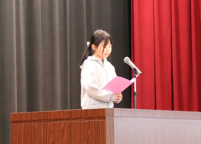 また、代表の児童は、勇気を出していろいろなことにチャレンジすること、自分から声をかけ、あいさつすることをがんばっていきたいという話をしてくれました。